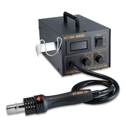 ATTEN AT852D là trạm khí nóng (hot air rework station) kỹ thuật số công suất 550W, được thiết kế dành cho sửa chữa và tháo/hàn linh kiện SMD, BGA trên bo mạch PCB trong điện tử chuyên nghiệp. Sản phẩm sử dụng bơm màng (diaphragm pump) cho luồng khí mạnh, màn hình LED hiển thị nhiệt độ, điều khiển núm xoay dễ dàng, và tính năng làm mát thông minh để an toàn, kéo dài tuổi thọ. An toàn ESD, tương thích thiếc không chì, lý tưởng cho sửa chữa điện thoại, máy tính hoặc ECU ô tô. Sản phẩm làm nóng nhanh với heater đặc quyền, phù hợp xưởng nhỏ hoặc cá nhân.