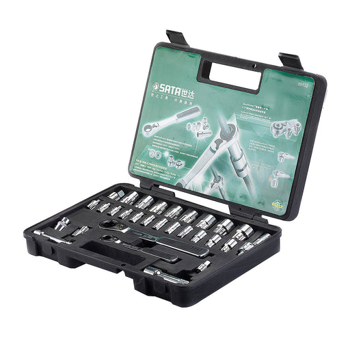 Bộ đầu tuýp 24 chi tiết cốt 1/2 inch SATA 09205 hệ mét SATA 1/2" Drive Industrial, Heavy-Duty Large 12-Pt. Socket Set, 24-Piece, Metric, 72T Ratche...
