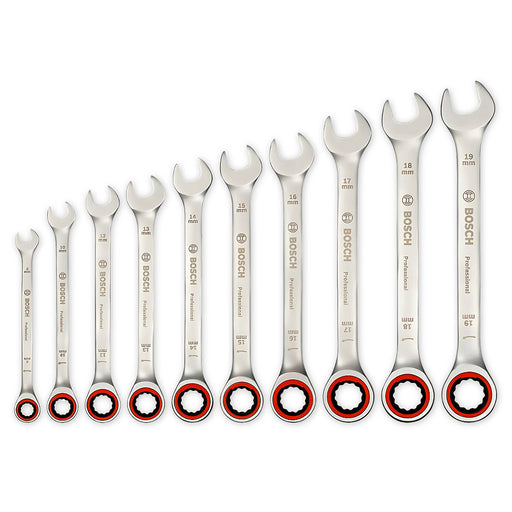 BoschBộ 10 cờ lê vòng miệng tự động Bosch 1600A02AU0 kích thước 8mm - 19mm, vật liệu thép trắng ______________________________ Bộ 10 cờ lê vòng miệng t...