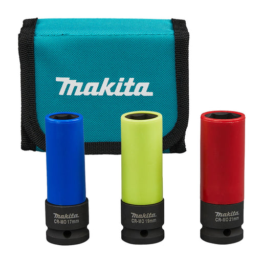 Bộ đầu tuýp cốt 1/2 inch 3 chi tiết Makita E-12354 nhận diện theo màu, kích thước từ 17mm-21mm, dài 86mm ( Cấp 3 sao ) ____________________________...
