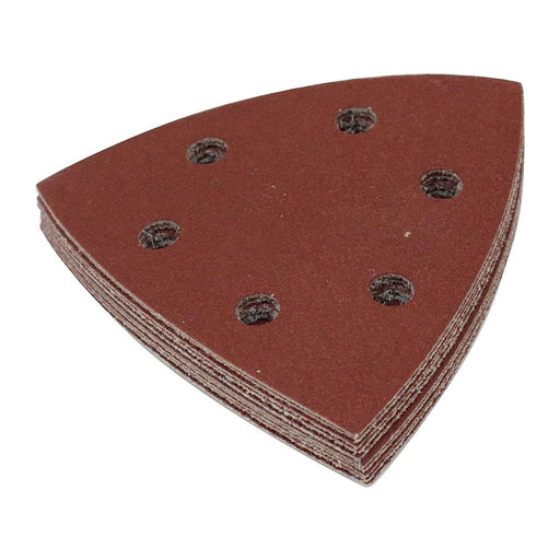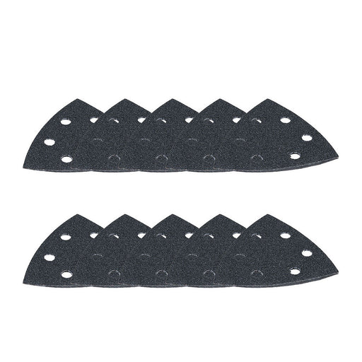 Hộp 10 giấy nhám tam giác đục lỗ 93mm Makita cho các vật liệu cứng như đá hoa cương, thủy tinh dùng với đế gai (B-65115) dùng cho máy cắt rung ( Cấ...