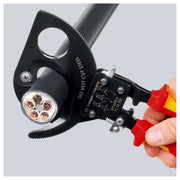 Kìm cắt cáp nhông 2 giai đoạn, cho cáp đồng và nhôm KNIPEX cách điện 1000V, chiều dài từ 250mm - 280mm, sơn đen chống ăn mòn