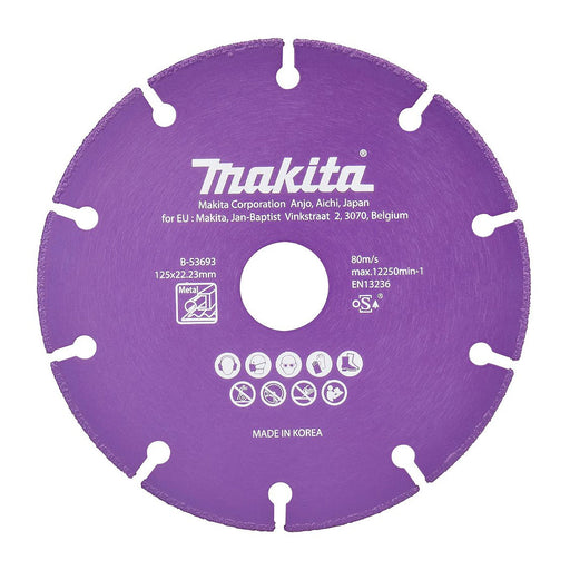 Xem chi tiết đầy đủLưỡi cắt kim cương cao cấp 125mm kiểu răng phân đoạn hàn chân không Makita B-53693 dùng cho kim loại, lỗ cốt 22.23mm, cắt khô ( Cấp chuyên dụng ) _...