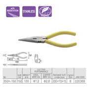 Kìm mũi nhọn chuyên dụng 150mm (6 inch) Fujiya 350H-150, vật liệu thép không gỉ cao cấp. TIêu chuẩn RoHS. Xuất xứ Nhật Bản