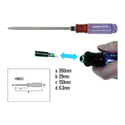 Tua vít đa năng 2 đầu cán nhựa trong Fujiya FCSD-63-150, dài 260mm, thép CR-V có nam châm. Xuất xứ Nhật bản.