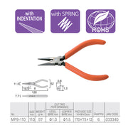 Kìm nhọn mini mũi ngắn 110mm (4.5 inch) Fujiya MP9-110, có lò xo trợ lực. Tiêu chuẩn RoHS. Xuất xứ Nhật Bản