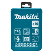 Bộ mũi khoan kim loại HSS-G 19 chi tiết Makita D-54025 kích thước từ 1mm - 10mm, đuôi trơn