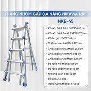 ‣ NIKAWA NKE45: Chiều cao tối đa 5.28m - Số bậc 2*5 - Trọng lượng 16kg