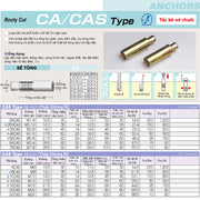 Tắc kê nở chuôi CAS-Type hệ inch và mét Unika, chất liệu thép không gỉ, chuyên dùng cho bê tông và đá. Chứng nhận JCAA