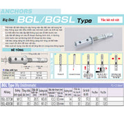 Tắc kê nở rút BGL-Type hệ mét Unika, chất liệu mạ Unichromate, chuyên dùng cho bê tông và đá