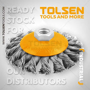 Bánh cước 100mm sợi thép xoắn 0.5mm, Ren M14x2 TOLSEN 77520 (tiêu chuẩn EN1083)