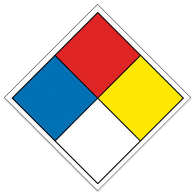 Nhận dạng mối nguy hiểm theo NFPA - Sản phẩm Không tồn tại các mối hiểm nguy về sức khoẻ, cháy nổ, phản ứng dây chuyền và các hiểm hoạ khác