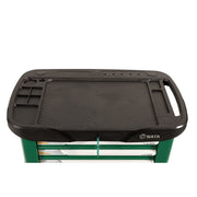 The perforated plates on the left and right sides of the cart body are designed to be used in conjunction with SATA hooks for hanging large tools and items