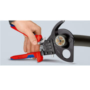Kìm cắt cáp nhông 2 giai đoạn, cho cáp đồng và nhôm KNIPEX chiều dài từ 250mm - 280mm, sơn đen chống ăn mòn, tay cầm bọc nhựa chống trượt