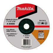 Đá mài Inox 180mm ( 7 inch ) Makita dày 6mm, lỗ cốt 22.23mm ( 7/8 inch ) tâm trũng ( Cấp 3 sao )