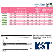Dây rút nhựa đen KST cao cấp chống tia UV và chịu thời tiết khắc nghiệt, tiêu chuẩn quốc tế, dài 140mm -370mm, bản rộng 3.6mm (Size I)