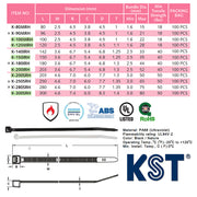 Dây rút nhựa chịu nhiệt 120°C KST cao cấp, tiêu chuẩn quốc tế, dài 80mm -300mm,