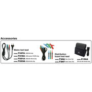 ‣ Phụ kiện đi kèm: 7123-7124-7125-7126 (dây đo dạng đầu cắm), 7246-7247 dây đo bảng phân phối, 9156A: Túi mềm kèm dây đeo, Pin và sách hướng dẫn