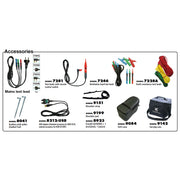 ‣ Phụ kiện bao gồm: Dây thử nguồn, 7281(Dây thử có công tắc điều khiển từ xa), 7246(Dây thử bảng phân phối), 7228A(Dây thử điện trở đất), 8041(Cọc tiếp địa phụ[2cọc/1bộ])