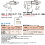 Thước kẹp điện tử Mitutoyo Series 573, ABSOLUTE Digimatic Neck Caliper, hàm kẹp cổ chai Point Jaw, mũi nhọn