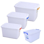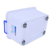 Thùng nhựa trong suốt Duy Tân, hình vuông, có bánh xe và nắp gài.
