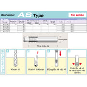 Tắc kê hàn AS-Type hệ mét Unika, chuyên dùng cho bê tông và đá
