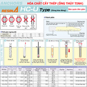 Hóa chất cấy thép (Ống thủy tinh) Unika HC-U Type, chuyên dùng cho bê tông và đá