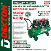 Máy nén khí không dầu Dekton DK-AC59100 công suất 6.0HP, bình chứa 100L
