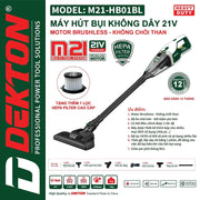 Máy hút bụi Dekton M21-HB01BL dùng pin 21V, lực hút tối đa 16Kpa