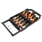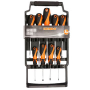 Bộ tua vít 9 chi tiết Kendo 20214 (Tua vít dẹp - Tua vít bake) có giá treo bằng nhựa, vật liệu thép Cr-V