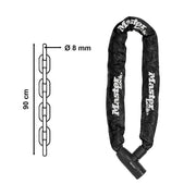 Khóa dây xích dùng chìa Master Lock cao cấp, dây xích bằng thép cường lực dày 8mm được bọc lớp vải nhiều màu dài 90cm