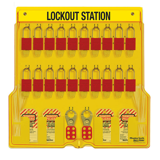 Bộ 20 ổ khóa treo, kèm bảng gắn tường Master Lock 1484BP1106ES thân khóa bằng nhôm Anodized
