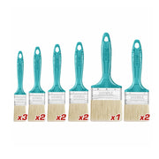 3 cọ 1 inch , 2 cọ 1.5 inch , 2 cọ 2 inch , 2 cọ 2.5 inch , 2 cọ 3 inch , 1 cọ 4 inch . Tay cầm nhựa